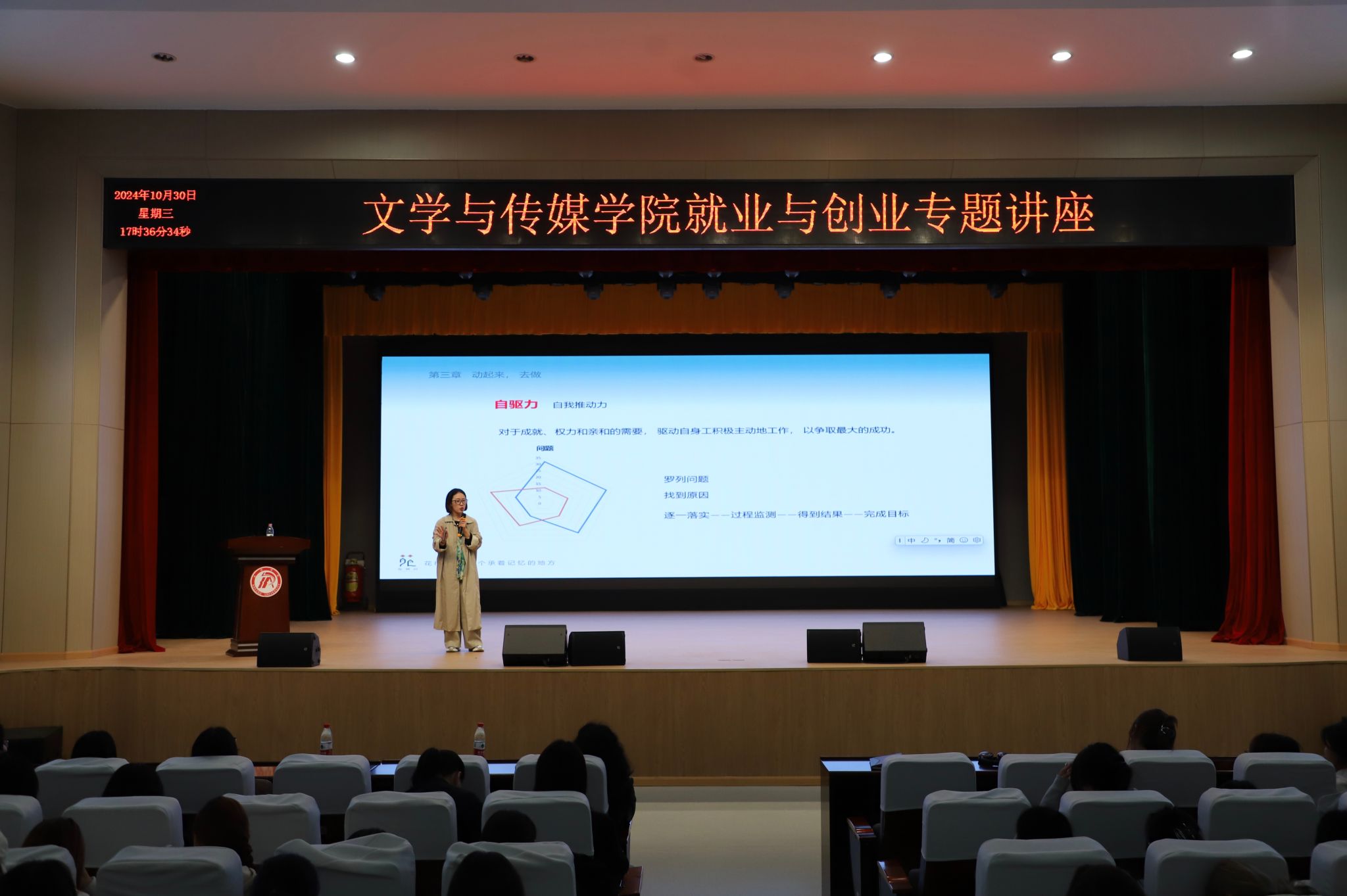 为贯彻落实国务院办公厅关于深化高等学校创新创业教育的实施意见,创新就业创业指导课程教学方式,10月30日下午,拉斯维加斯0567官方网站特邀陕西花栖玥民宿管理有限公司创始人郭媛媛在江南校区大礼堂为我院学生开展就业与创业专题讲座,学院党总支副书记杨海蓉、学工办(就业办)主任薛涛及2022级、2023级全体学生参会,本次活动由薛涛主持。
